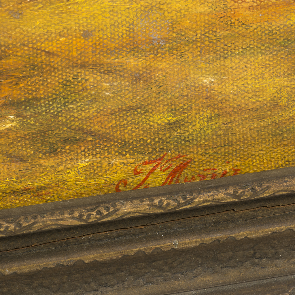 Presenta detalles de conservación, manchas, marcas, desgaste y marco desprendido.