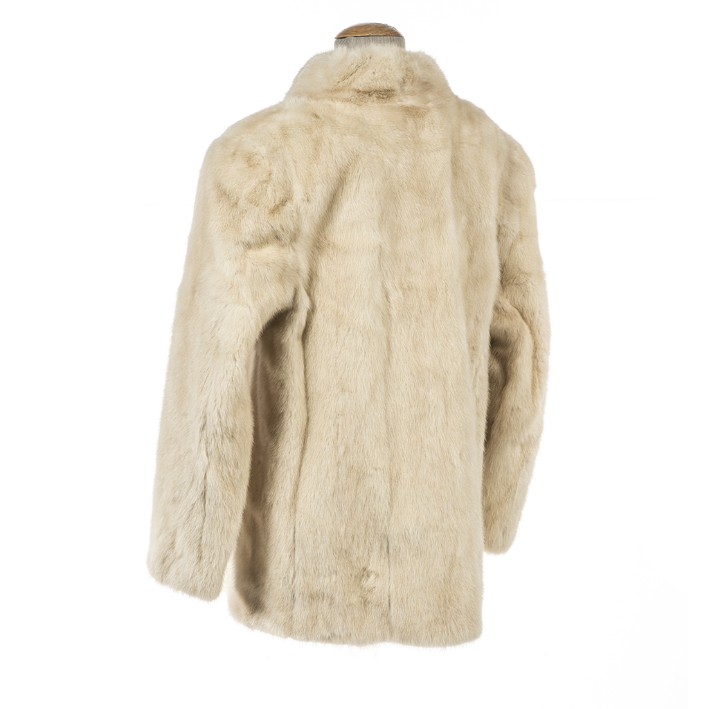 Saco. Siglo XX. Elaborado en piel de mink. Talla aproximada: mediana. Con funda guardapolvo. Presenta detalles de conservación y manchas. Estimado $ 4,500-5,500