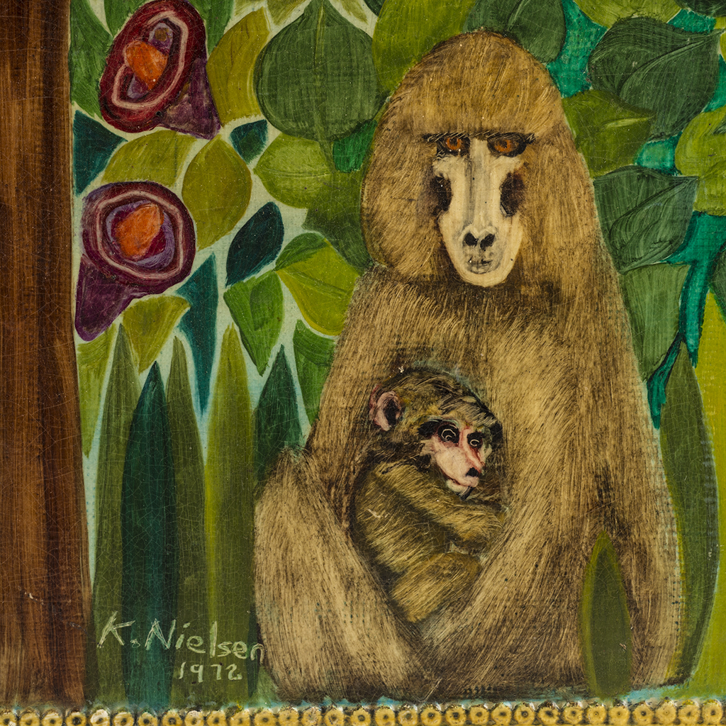 Firmado K. Nielsen. La selva. Óleo sobre tabla. Fechado 1972. Sin enmarcar. Presenta manchas y craquelados. Dimensiones: 70 x 80 cm. Estimado $ 2,000-4,000