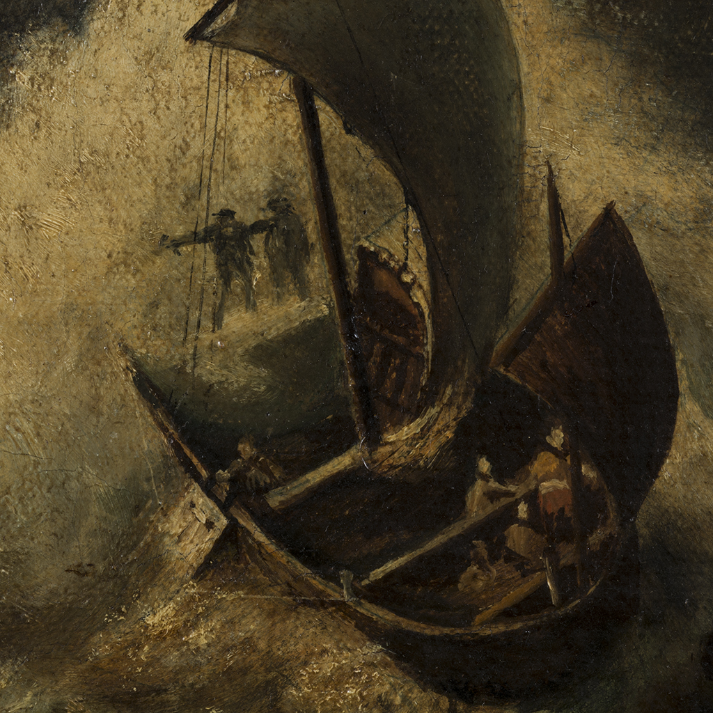 Subasta 896T, Lote # 249 Anónimo. Siglo XX. Veleros en tormenta. Óleo sobre tela. Enmarcado. Dimensiones: 41 x 61 cm. Estimado $ 3,500-4,500