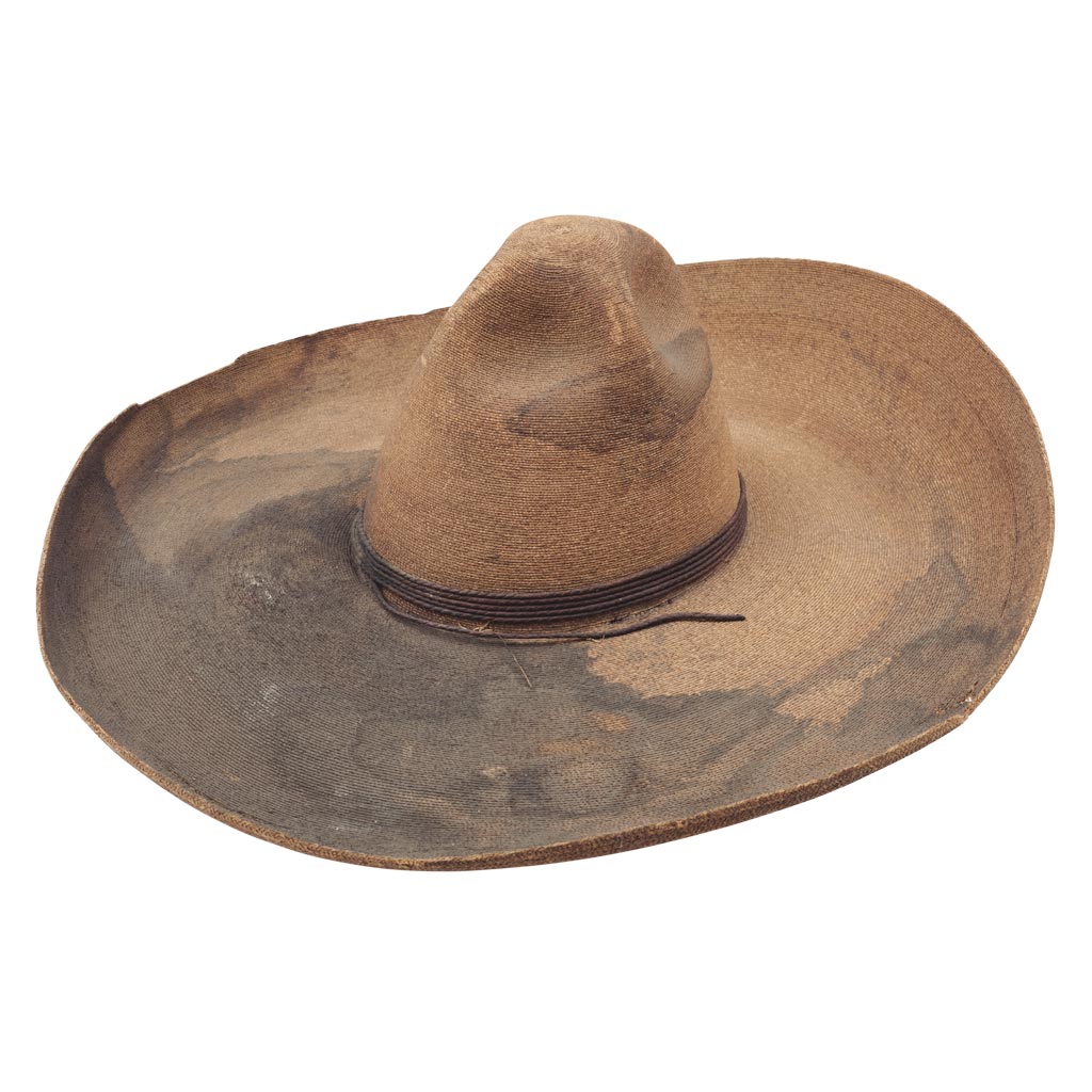 Uno marcado CASA ENCINAS. Elaborados en palma tejida, uno con toquilla de cordón de calabrete y ribete de cuero y el otro con toquilla de cordón. Detalles de conservación y estructura. Estimado $7,000-12,000
