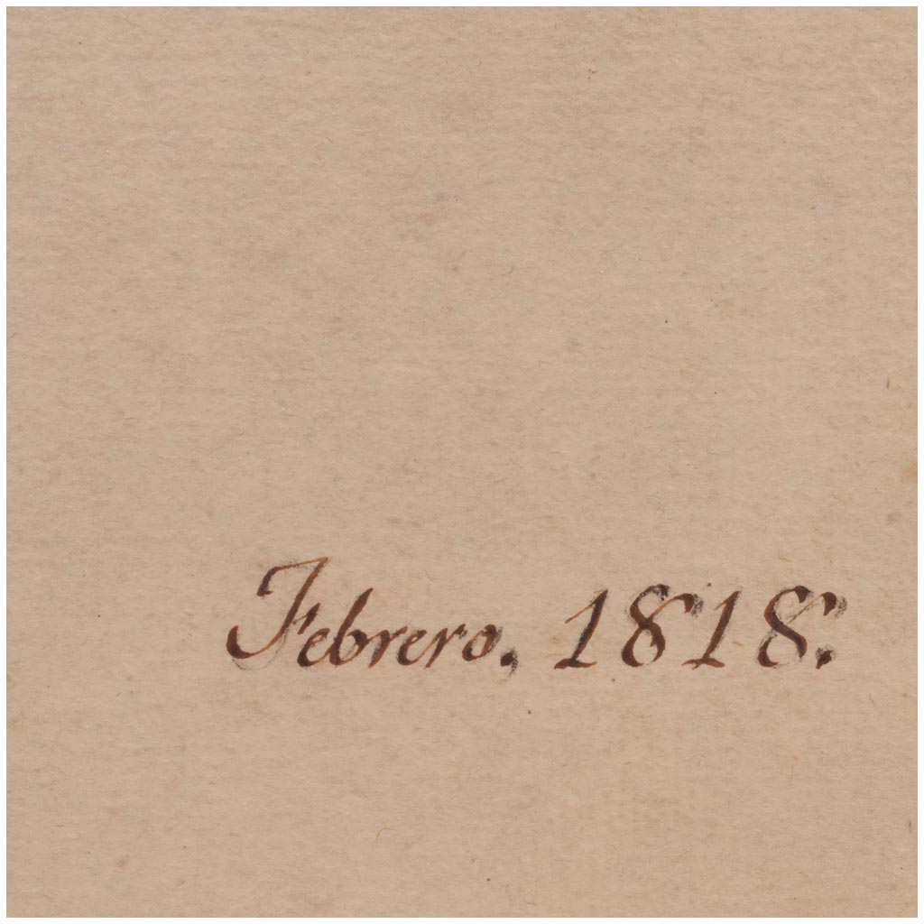 Subasta 880, Lote # 343 FIRMADO J. GARCÍA RETRATO DE HOMBRE JOVEN ESPAÑA, SIGLO XIX Lápiz sobre papel (marca "ROMANI"). Firmado y fechado con tinta: "J. García, Febrero 1818". Detalles de conservación. 39 x 28 cm Proviene de la colección de José Luis Pérez de Salazar. Estimado $6,000-10,000