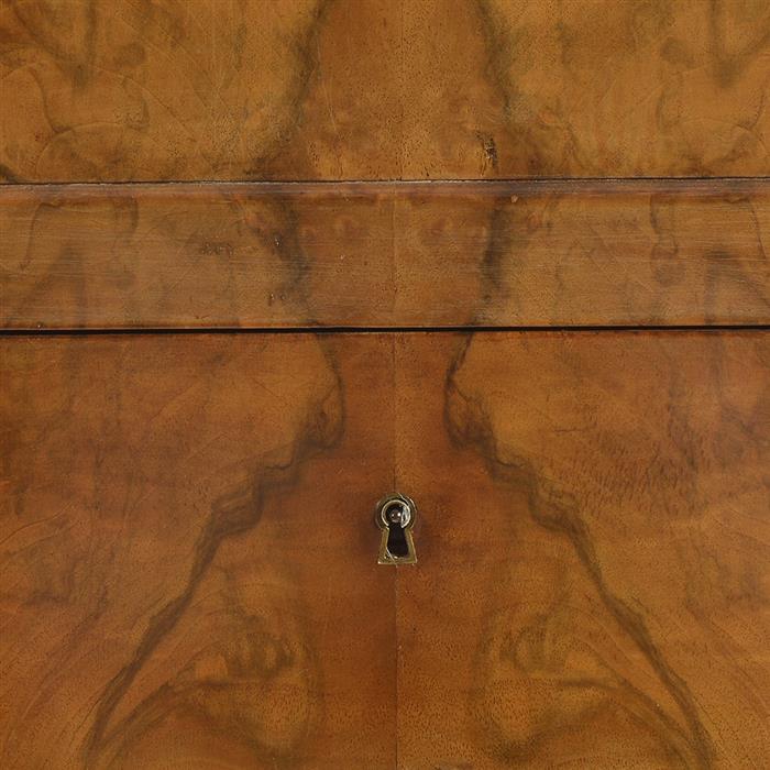 Con cubierta rectangular de mármol, 5 cajones y puerta abatible con cajones y entrepaños internos.