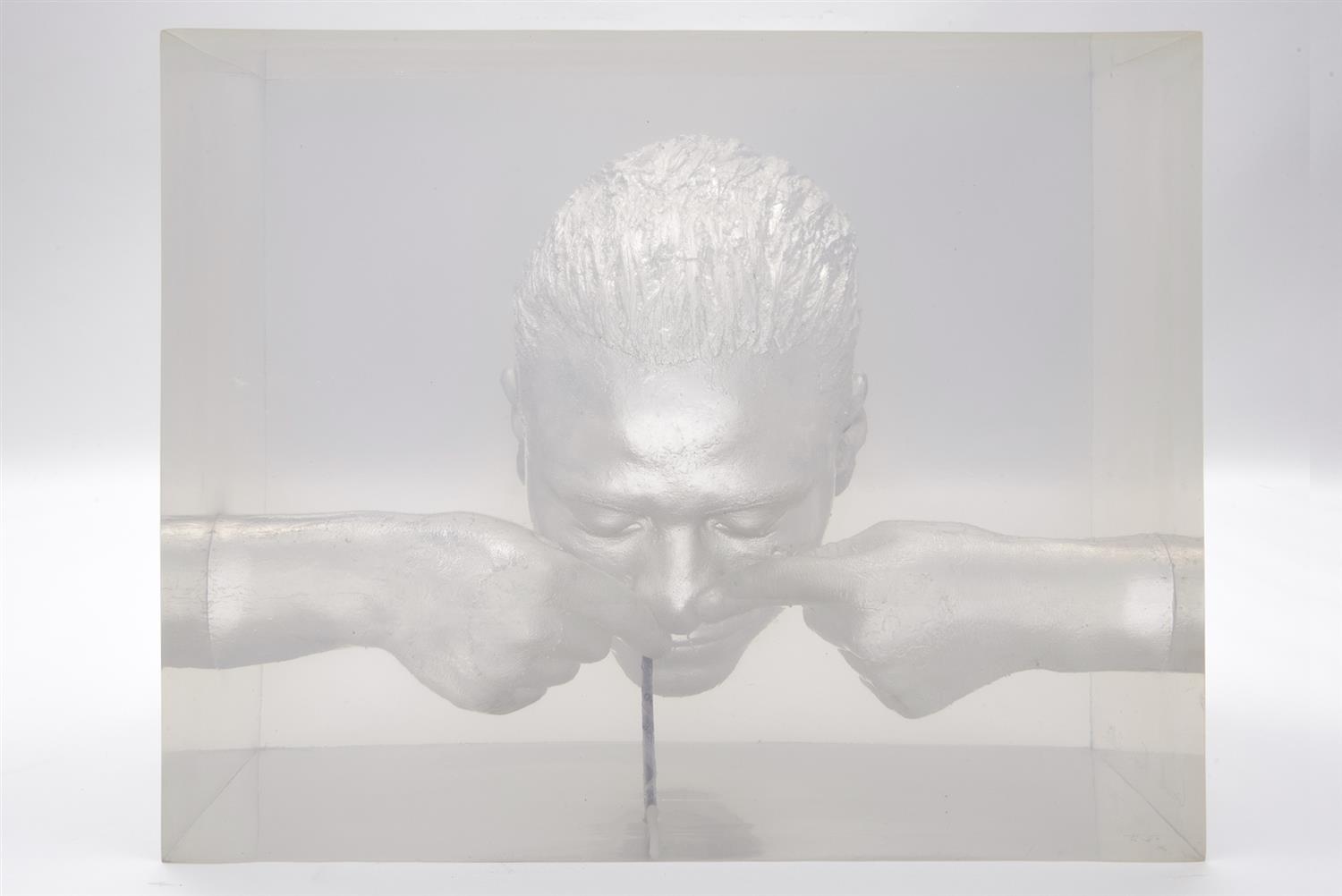 Subasta 916, Lote # 168 EMILIANO GIRONELLA (Ciudad de México, 1972 - ) Cocainómano degollado, 2016 Sin firma Escultura en metacrilato vaciado y encapsulado en base de metal con luz Con constancia de autenticidad de El Aire Centro de Arte, firmada por el artista. Publicada en: PRADO GALÁN, Gilberto. México al filo. México, 2011. Exhibido en: "México al filo", muestra presentada en el Espacio Cultural perteneciente a la Universidad Iberoamericana, enero del 2011. Es el hijo de los artistas Alberto Gironella y Carmen Parra; se graduó de la Interlochen Arts Academy en Michigan donde estudió Escultura, Fotografía y Grabado. Es actualmente reconocido a nivel internacional por sus diálogos y escritos sobre la "Artempatía" y su práctica social-artística diversa. Conceptualmente, es un artista que implementa su amplia gama de medios artísticos para abordar temas relacionados a la violencia en México, específicamente y en ocasiones en relación con el tráfico de drogas dentro del país, siendo un intento de reconciliar a la sociedad y la policía. Para Emiliano Gironella Parra, el arte es una poderosa herramienta para modificar paradigmas e historias preconcebidas; una herramienta clave para cambiar la visión que se tiene en el exterior sobre México e inspirar un cambio radical y educativo dentro del país. ""Cabezas de decapitados elaboradas mediante el proceso de máscara mortuoria en positivo de látex, encapsuladas en acrílico, así como imágenes de la muerte y el diablo, entre otras, forman una iconografía relacionada con el narco y la lucha para combatirlo […] Cada trabajo tiene un diálogo, que aquí está marcado por los degollados, básicamente con el mercado 'narco', pero está marcado más que nada por lo lúdico y por mi aventura personal de adquirir conocimiento mediante lo que nos toca vivir. Hay una cosa muy cómoda del arte: soy disidente y protesto sólo con mi trabajo, pero en mi vida cotidiana lo que quiero es que mi trabajo me reporte comodidad". Emiliano Gironella. Fuentes consultadas: MAC MASTERS, Merry. "Explora artista 'la crueldad en la pelea por el mercado del narco'". México. La Jornada, sección Cultura, 26 de enero del 2011 y sitio oficial del artista www.emilianogironellaparra.com 38 x 53.5 x 29 cm medidas totales con base USD $6,700-$10,000 Estimado $120,000-180,000