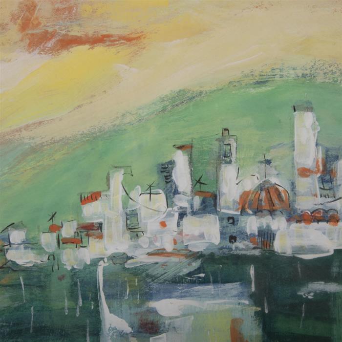 a) Paisaje urbano. Firmado en el ángulo inferior izquierdo. Enmarcado en madera tallada.
