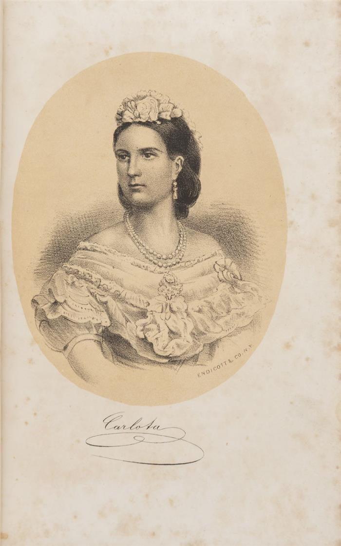1868 - Hall, Frederic.Life of Maximilian I: Late Emperor of Mexico, with a Sketch of the Empress Carlota. New York: James Miller, 1868. 8o. marquilla, 317 p., 3 h. Cuatro litografías: Retratos de Maximiliano y Carlota con firma facsimilar, Vista del Castillo de Miramar y Tumba de Maximiliano en el Cerro de las Campanas. Encuadernado en pasta dura, lomo en piel.