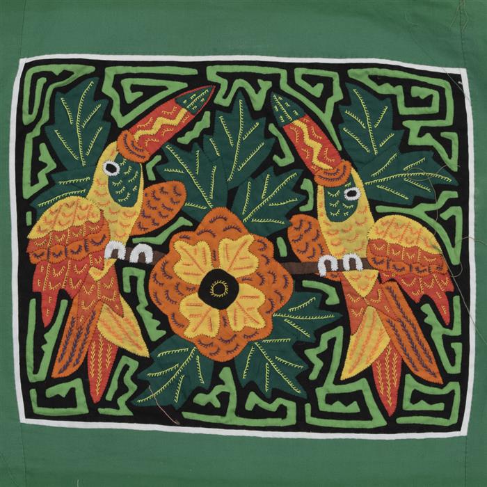 Lote de fragmentos de telas, sombreros decorativos, banderas y tapices.