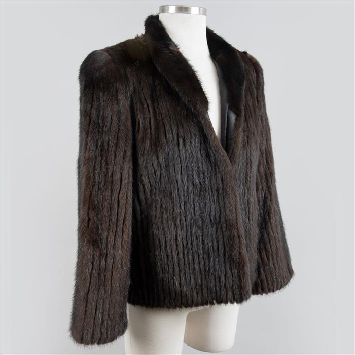 Abrigo corto elaborado en piel tipo mink color café de la marca Saga Mink.