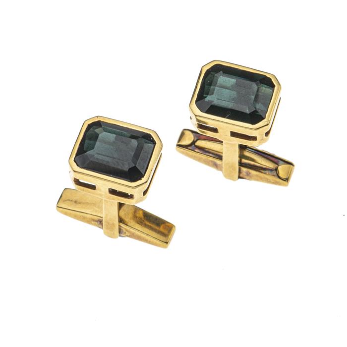 Par de mancuernillas con simulantes en oro amarillo de 18K de la firma H. Stern.