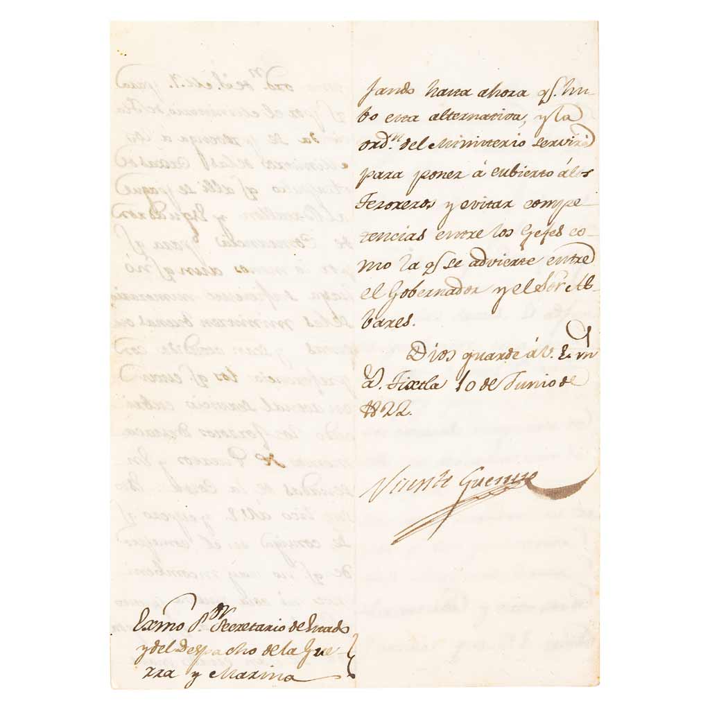 AC1822 - Guerrero, Vicente. Carta Dirigida al Secretario de Estado y del Despacho de la Guerra y Marina, Antonio de Medina.
