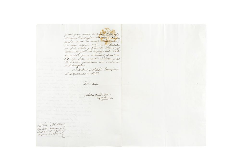 AC1823 - Bravo, Nicolás.Carta Dirigida al Ministro de la Guerra y Marina, José Joaquín de Herrera. "… Ruego a V. E. se sirva disponer venga un Gefe de su concepto á encargarse del mando de esta Provincia interín variando temperamento en algún punto de ella, logro mi restablecimiento, pues en este estado me es imposible desempeñar los asunto de ella… y es muy necesario en las nuevas conbulciones que ha ofrecido y ofrece la conducta del Coronel Marquez: todo lo pongo en la consideración de vuestra excelencia por si encuentra algún medio para que sin desatender la instancia del señor Armijo, permanezca aun en el mando que desempeña…". Guanajuato, septiembre 18 de 1823. Firma. 1 h. 30.5 x 21 cm. Membrete de la División de Operaciones del Ejército Libertador. LOTE CON PRECIOS DE RECUPERACIÓN Estimado $12,000-20,000