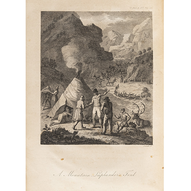 Subasta 1004, Lote # 188 Acerbi, Joseph. Travels Through Sweden, Finland, and Lapland, to the North Cape, in the Years 1798 and 1799. London: Printed for Joseph Mawman, 1802. 4o. marquilla, XXIV + 396; VIII + 380 p. Ex Libris de antiguo propietario. Tomo I: Ocho láminas (Dos plegadas). Lomo con faltantes. Tomo II: Un mapa plegado y ocho láminas. Cajos quebrados; lomos con cinta adhesiva, deteriorados; pastas gastadas. Encuadernados en pasta dura. Piezas: 2. Joseph Acerbi (1773 - 1846) explorador y científico italiano, emprendió en 1798 un viaje a través de Dinamarca, Suecia, Finlandia y Laponia; y al año siguiente llegó a Cabo Norte, lugar que ningún italiano había visitado previamente. A su regreso, Acerbi publicó sus Viajes en Inglaterra. Su relato encontró mucha desaprobación en Suecia, y el gobierno sueco intentó impedir su publicación en el extranjero. Incluye una descripción de la flora y fauna, geografía, y habitantes de dichas regiones. Estimado $12,000-14,000