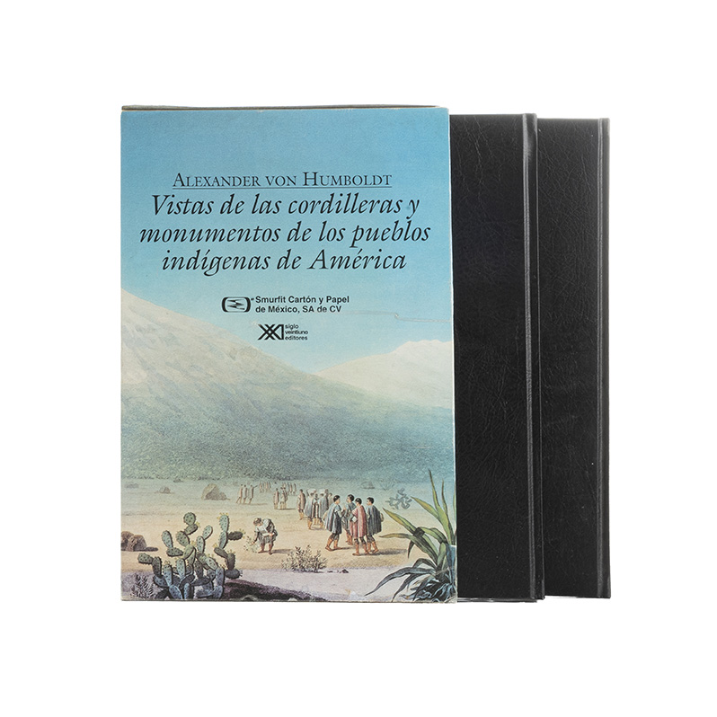 Humboldt, Alejandro de.Vistas de las Cordilleras y Monumentos de los Pueblos Indígenas de América. México: Smurfit Cartón y Papel / XXI Siglo Veintiuno Editores, 1995. fo. marquilla. Texto: LXXI + 379 p. Atlas: 69 láminas. Prólogo de Charles Minguet y Jean - Paul Duviols. Encuadernados en pasta dura. Piezas: 2. En estuche. Estimado $3,000-4,000