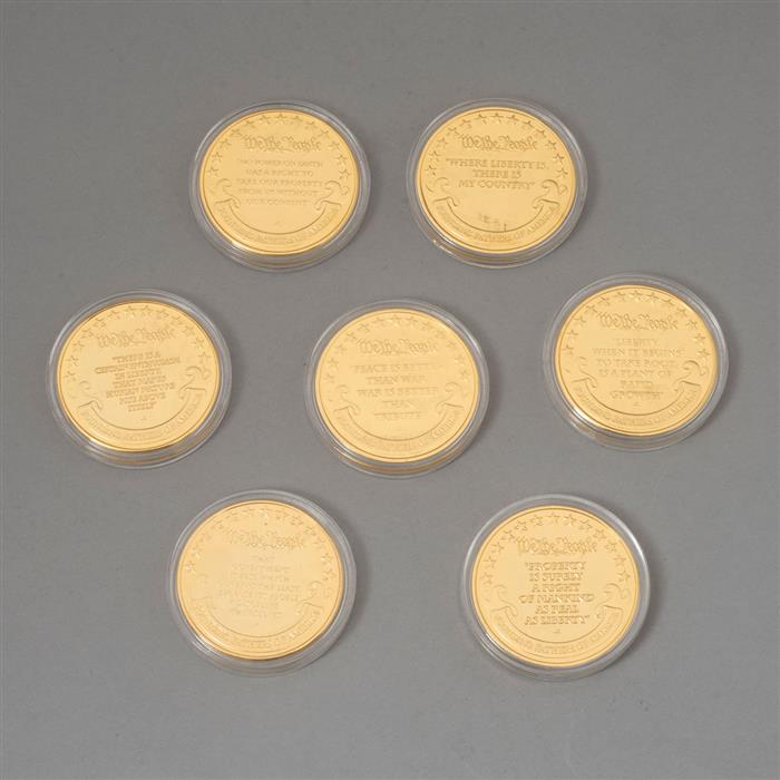 Colección de monedas conmemorativas de los padres fundadores de Estados Unidos.