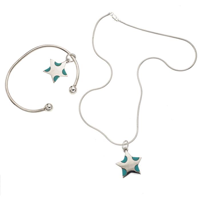 Subasta 1085T, Lote # 244 Collar, pulsera y dos pendientes con turquesas en plata .925. Estimado $550-800