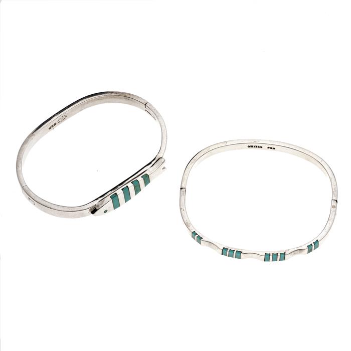 Dos brazalteres con turquesas en plata .925.