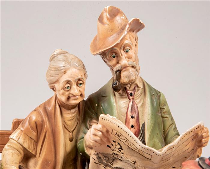 Consta de: "Madonna", pareja de ancianos, sevillana, joven con cántaro, viñera, pareja de viñeros ancianos, 3 aves y 4 payasos.