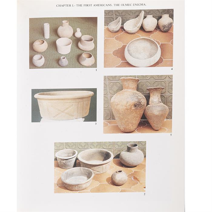 Subasta 1041, Lote # 38 Clark, John E. / Fuente, Beatriz de la / Gruener, James C. / González Calderón, O. L. / Coe, Michael D. / Bernal, Ignacio. Los Olmecas en Mesoamérica / Los Hombres de Piedra / The Olmec Riddle / The Jade Lords. / The Olmec World / Escultura Monumental Olmeca / The Olmec World. a) Clark, John E. Los Olmecas en Mesoamérica. México: Citibank, 1994. 4o. marquilla, 298 p. Encuadernado en pasta dura. b) Fuente, Beatriz de la. Los Hombres de Piedra. México: UNAM, 1984. 4o. marquilla, 384 p. + ilustraciones. Encuadernado en pasta dura. c) Gruener, James C. The Olmec Riddle. California: Vengreen Publications, 1987. 4o. marquilla, 511 p. Encuadernado en pasta dura. d) González Calderón, O. L. The Jade Lords. México: Novoa 4o. marquilla, 135 p. Encuadernado en pasta dura. e) Coe, Michael D. The Olmec World. The Art Museum, Princeton University, 1996. 4o. marquilla, 344 p. Encuadernado en rústica. f) Fuente, Beatriz de la. Escultura Monumental Olmeca. México: UNAM, 1973. 4o., 352 p. Encuadernado en rústica. g) Bernal, Ignacio. The Olmec World. California: University of California, 1969. 4o. marquilla, 273 p. Encuadernado en pasta dura. Total de piezas: 7. Estimado $4,000-5,000