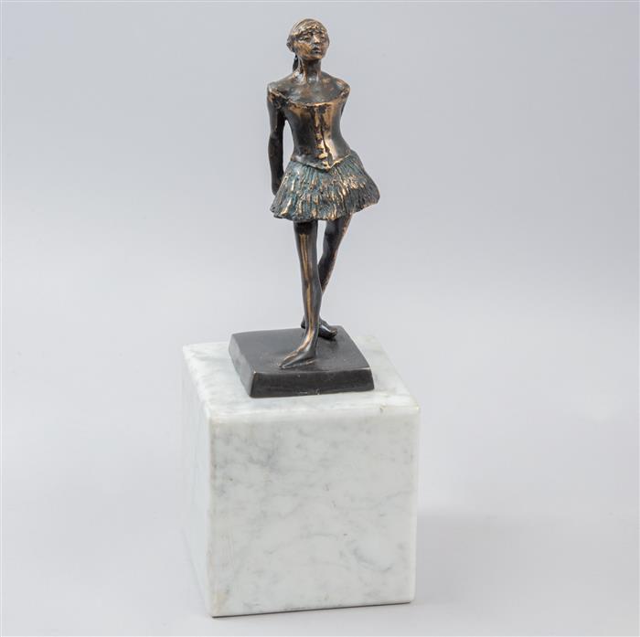 a) Reproducción de "La pequeña bailarina" de Degas. Escultura en bronce, con base de mármol. 40 cm de altura.