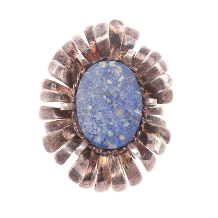 Dos prendedores con mosaico de lazurita y cerámica en plata .925.