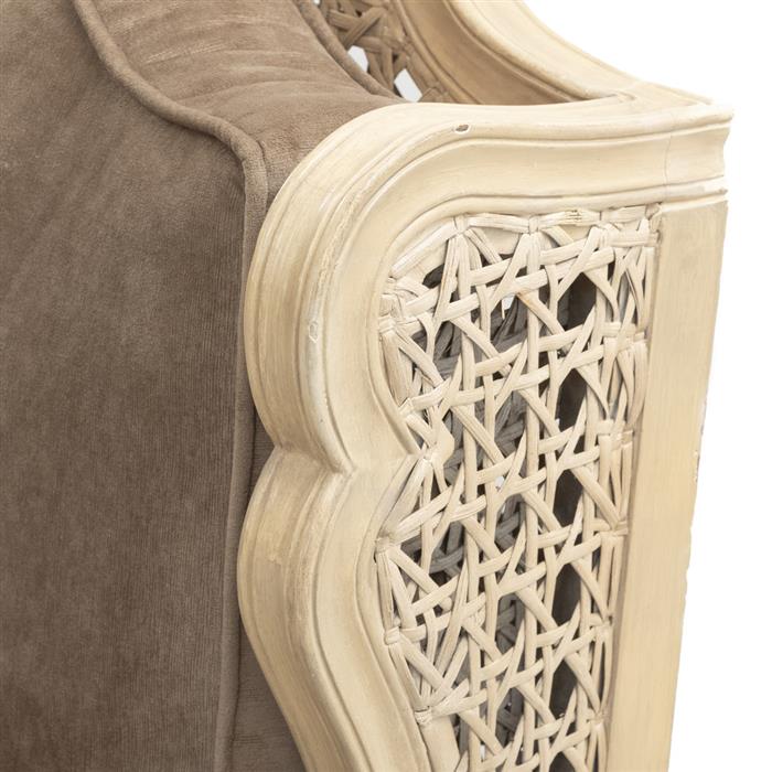 Elaborados en madera, aplicaciones de bejuco y tapicería de tela color gris