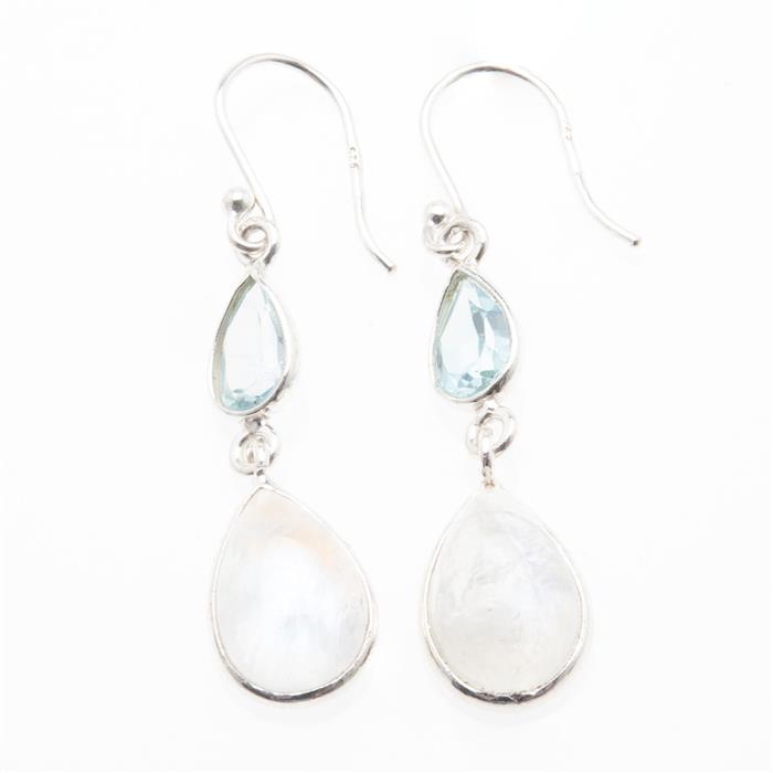 Par de aretes con labradorita blanca y topacios ~9.04 ct en plata .925