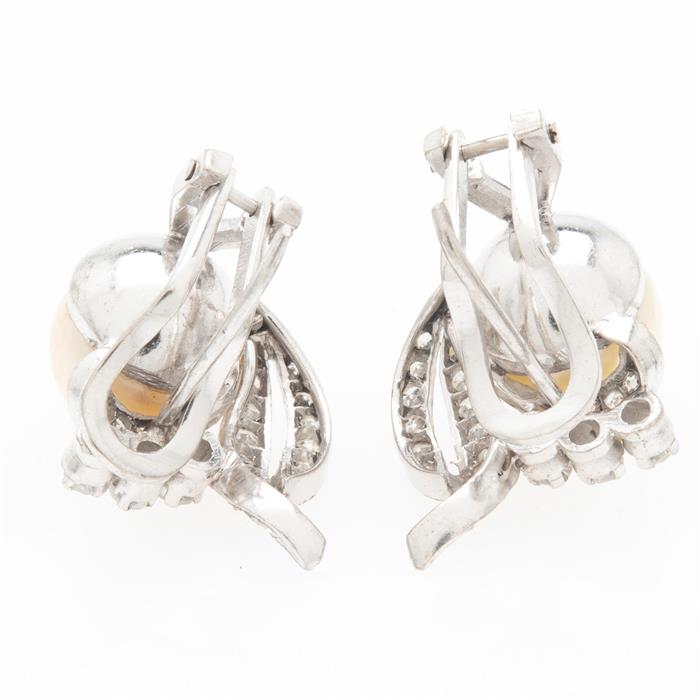 Subasta 1171T, Lote # 105 Par de aretes vintage con perlas y diamantes en plata paladio. 2 perlas color crema de 8 mm. 44 diamantes corte 8 x 8. Peso: 6.4 g. Estimado $1,800-2,500