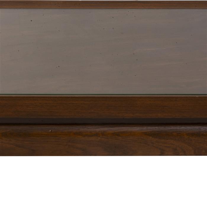 Elaborado en madera, con cubierta rectangular de vidrio con elementos naurales y soportes tipo cabriolé con molduras