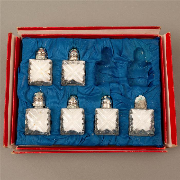 Consta de 2 licoreras, caja con 6 saleros y caja con 4 platos para caviar