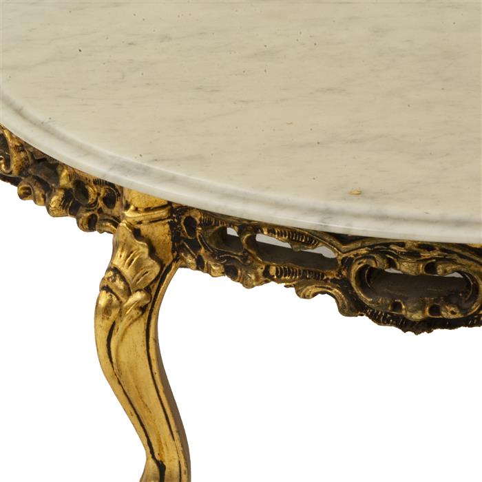 Elaborado en mármol recubierto de material sintético, y fustes en madera dorada decorado con elementos vegeatles, naturales y arquitectonicos, con soportes tipo cabriolé