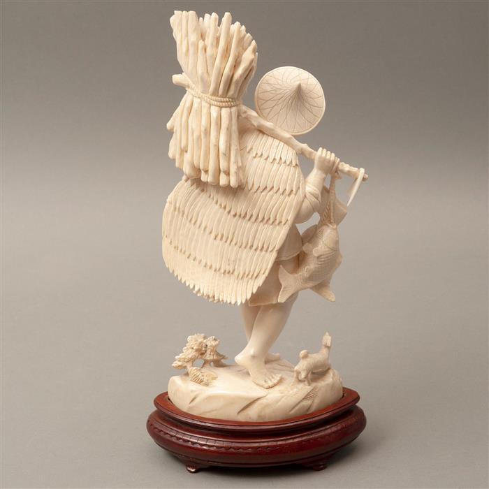 Talla en marfil; con base de madera