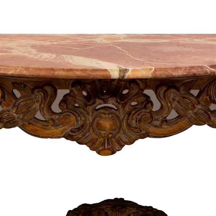 Cuenta con luna irregular biselada de 4 capas de platinado y remate superior. Consola con cubierta de mármol veteado