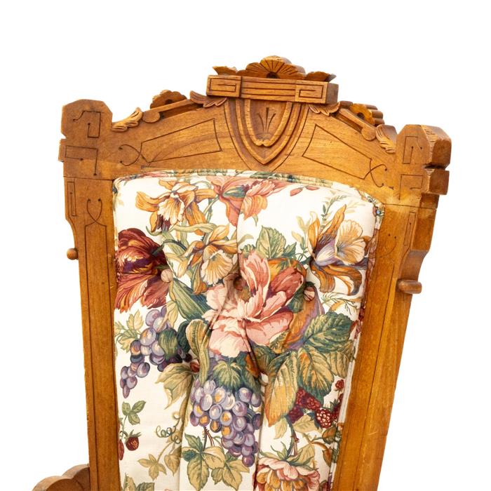 Elaboradas en madera con tapizado floral.