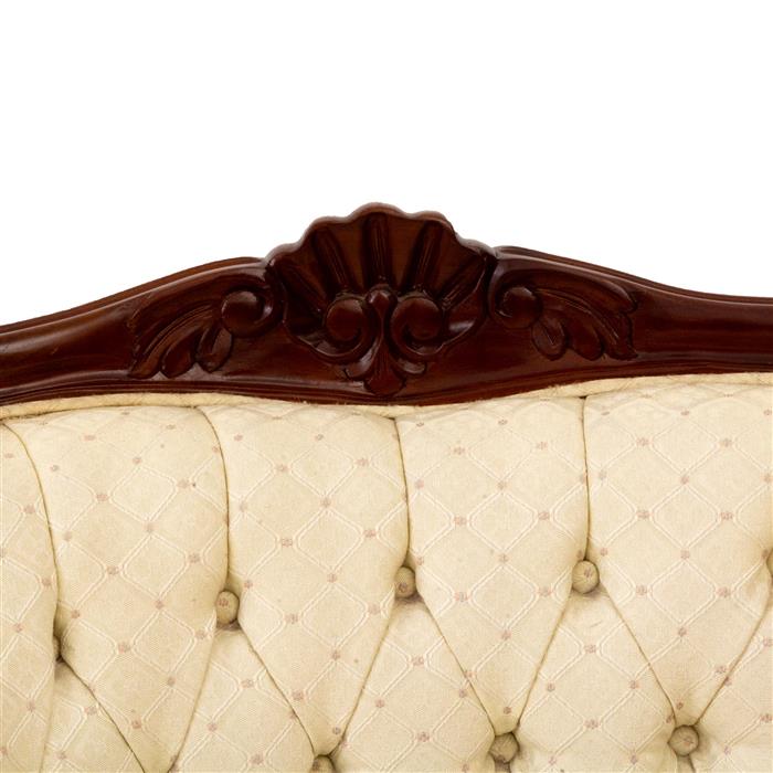 Cuenta con capitonado. Repisa lateral, cajón y soportes tipo cabriolé