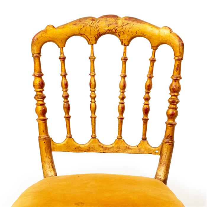 Cuenta con respaldo balaustrado y chambrana en caja; con soportes tipo cabriolé