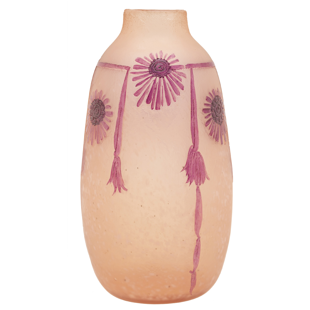 Elaborado en vidrio opaco en tonos violetas