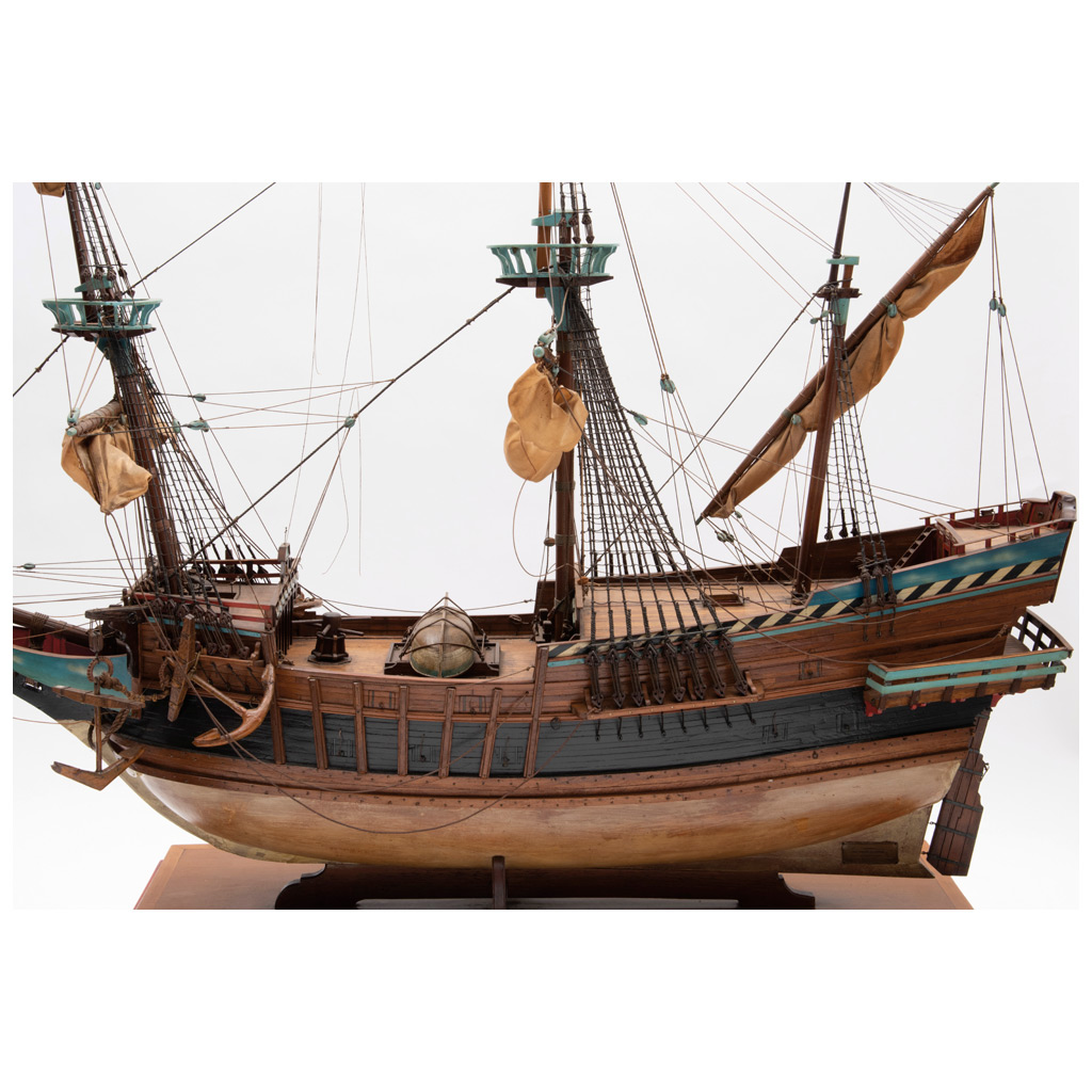 Elaborado a escala en madera policromada, metal y textil con base de madera