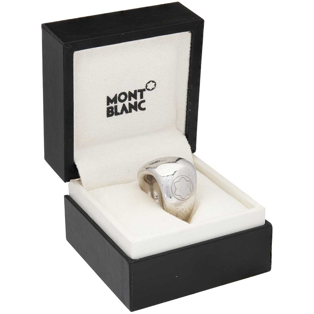 Subasta 1158, Lote # 207 ANILLO EN PLATA 925 DE LA FIRMA MONTBLANC Peso: 38.1 g. Talla: 7 aprox. Accesorios: caja. Estimado $4,000-6,000