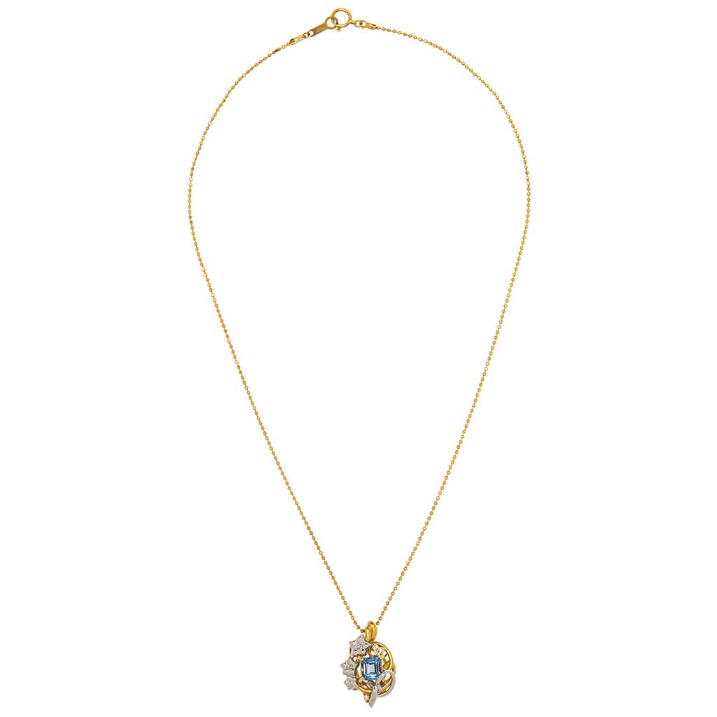 GARGANTILLA Y PENDIENTE CON TOPACIO Y DIAMANTES EN ORO AMARILLO DE 18K Y PLATINO 900