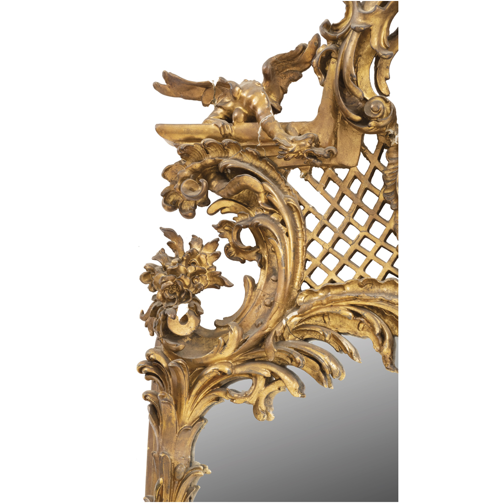 Elaborado en madera dorada tallada y pasta con luna rectangular biselada