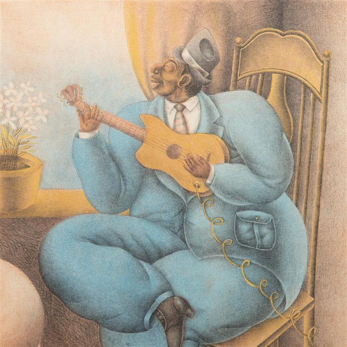 Subasta 1243T, Lote # 215 MAXIMINO JAVIER (Santa Fe la Mar, Valle Nacional, Oaxaca, 1948 - ) Familia de cantantes Firmada Litografía 18 / 50 Enmarcada. 65 x 50 cm Estimado $12,000-20,000