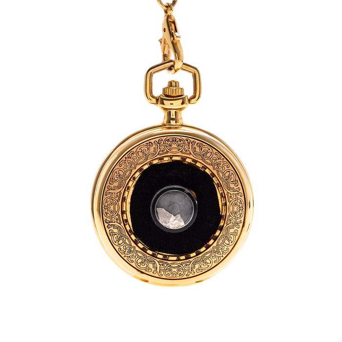 Caja y leontina en acero dorado.