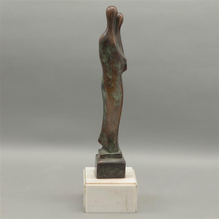 Bronce, patinado en color marrón; base de mármol blanco emplacado