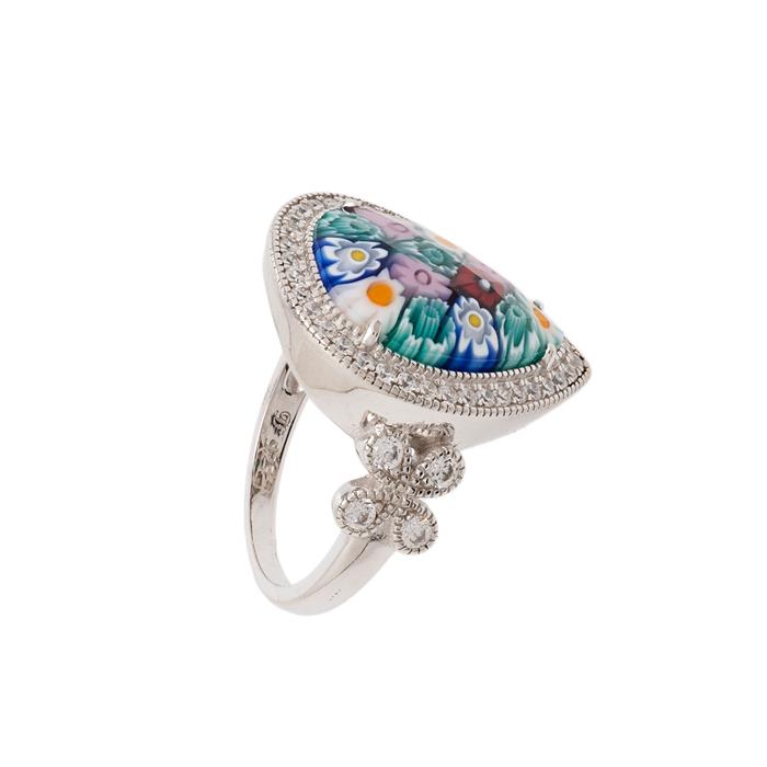 Subasta 1245T, Lote # 330 Anillo forma gota con cristal de murano en plata y rodio. Peso: 7.0 g. Estimado $800-1,500