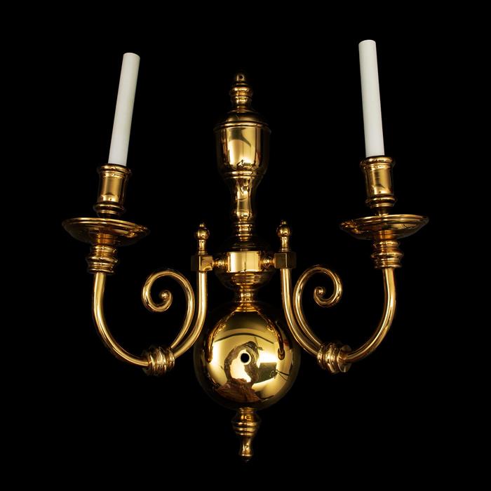 Marca UNDERWRITERS LABORATORIES, bronce acabado dorado, para dos luces; diseño estilo holandés