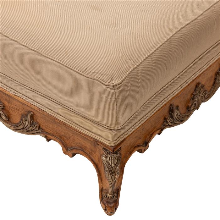 Elaborado en madera con detalles dorados, almohadón tapizado en color beige
