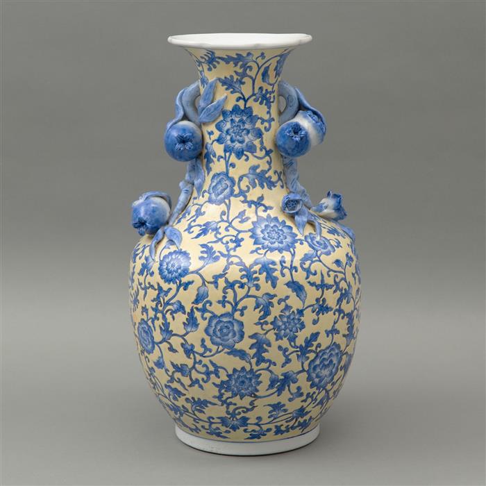 Decoración floral y orgánica en color azul en relieve sobre fondo amarillo