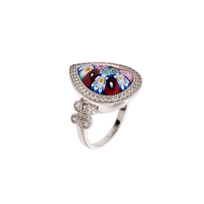 Anillo forma de gota en cristal de murano en plata y rodio.