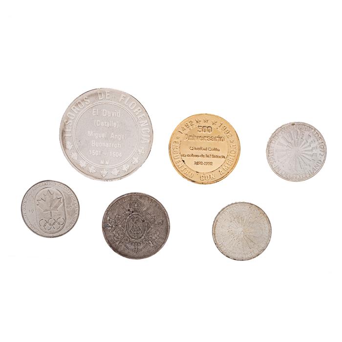 Subasta 1245T, Lote # 358 Seis medallas conmemorativas. Tesoros de Florencia, 500 aniversario Cristóbal Colon y otros temas en plata .925. Peso: 175.8 g. Estimado $4,500-6,000