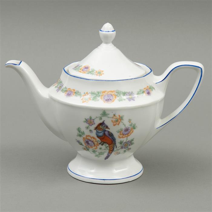Consta de 4 tazas, 6 platos postre, tetera, cremera